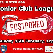 Due to adverse weather conditions, today’s Ulster league match VS Belnaleck has been postponed.